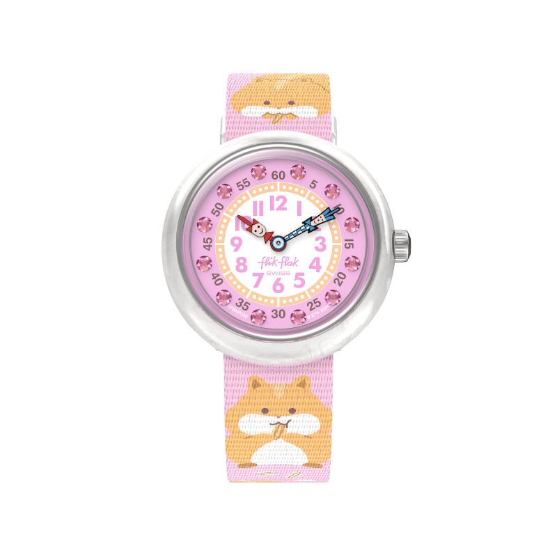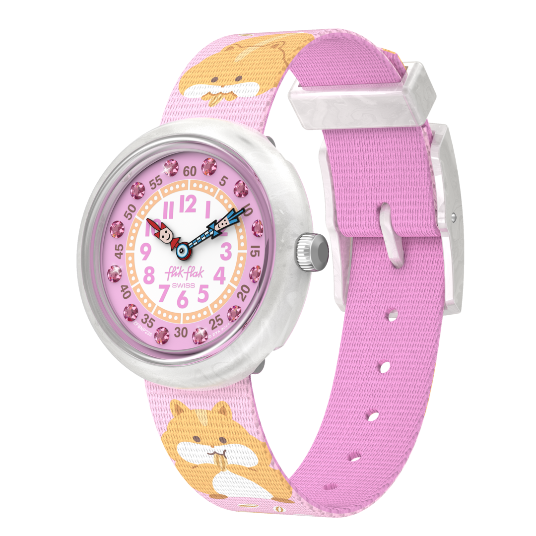 ¡CUDDLY HAMSTER es perfecto como primer reloj! Ayude a los niños a aprender a decir la hora con un look verdaderamente adorable, adornado con cristales y efecto nácar.