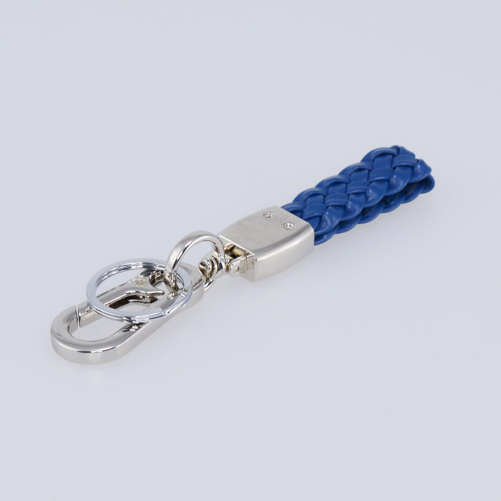 Kudottu nahkainen avaimenperä ja karabiini.