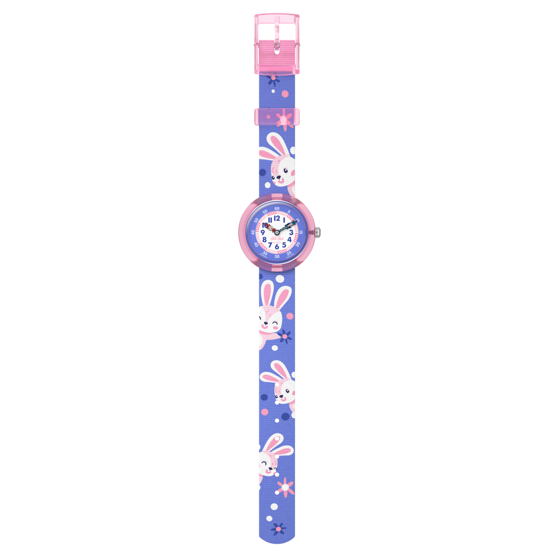PEEK-A-BUNNY on ihanteellinen lahja jokaiselle, joka rakastaa kaneja! Tämä lapsille suunnattu opettavainen kello auttaa heitä oppimaan kertomaan aikaa viehättävässä läpinäkyvässä vaaleanpunaisessa kotelossa, joka on valmistettu biopohjaisesta materiaalista.