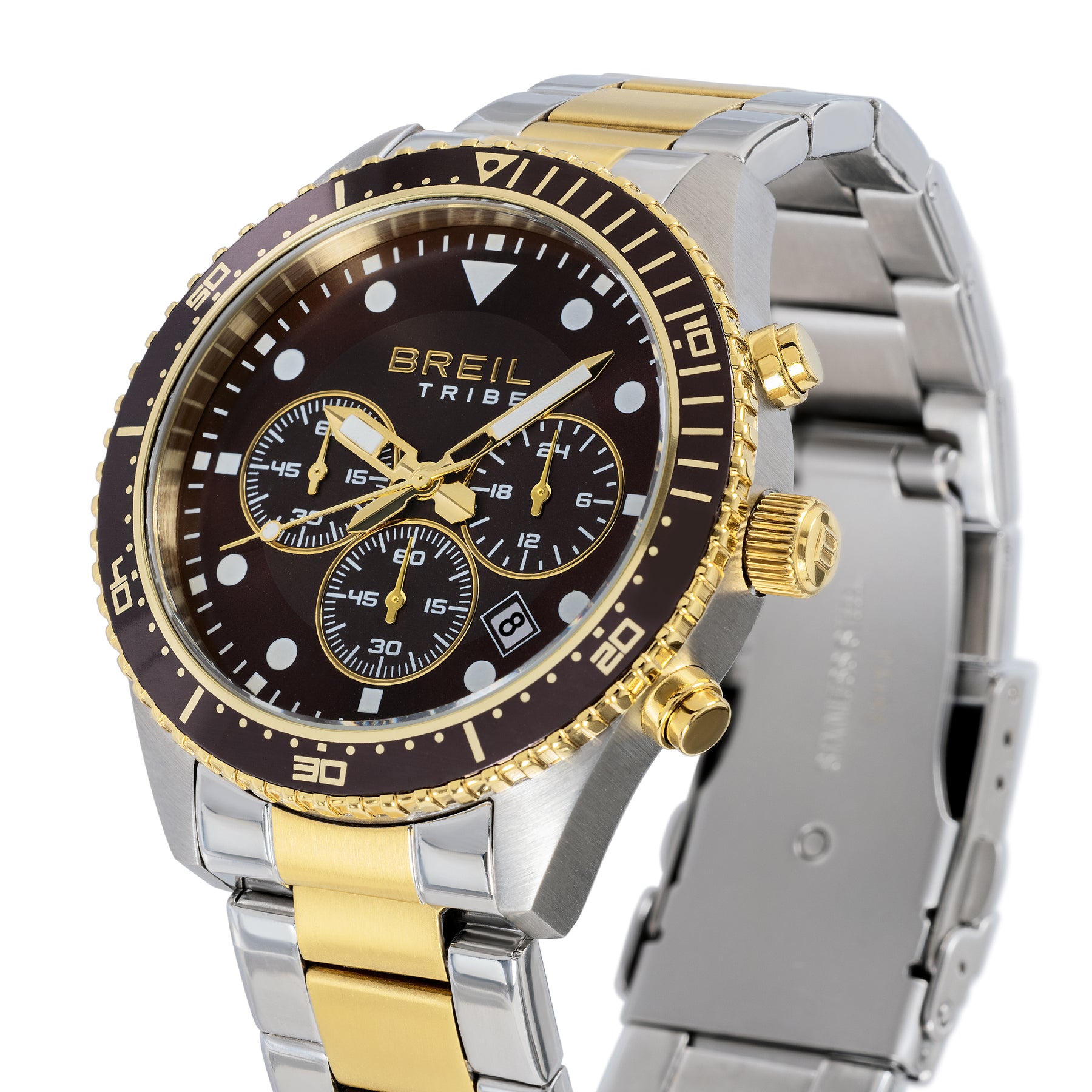 Montre Breil Sail Chrono 42mm acier quartz marron finition PVD or jaune EW0794