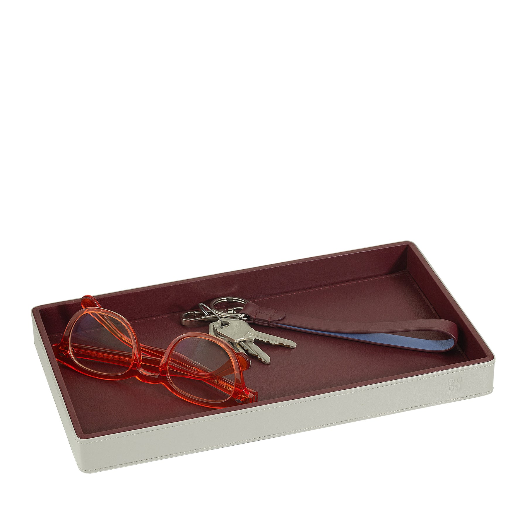 DUDU Plateau de Rangement en Bois Recouvert de Cuir Véritable, Plateau Décoratif pour la Maison, 27 x 15 cm, Accessoire de Design pour la Maison