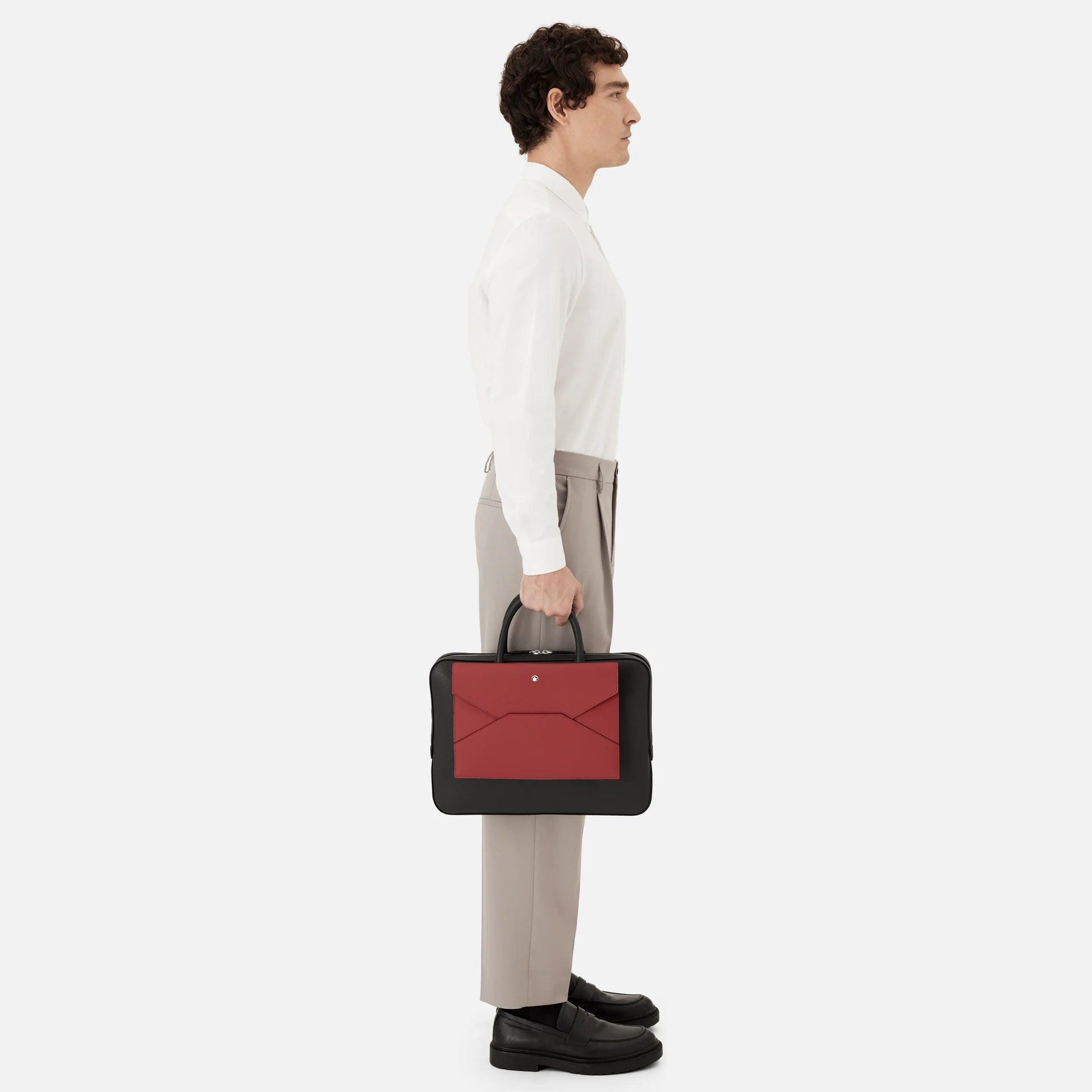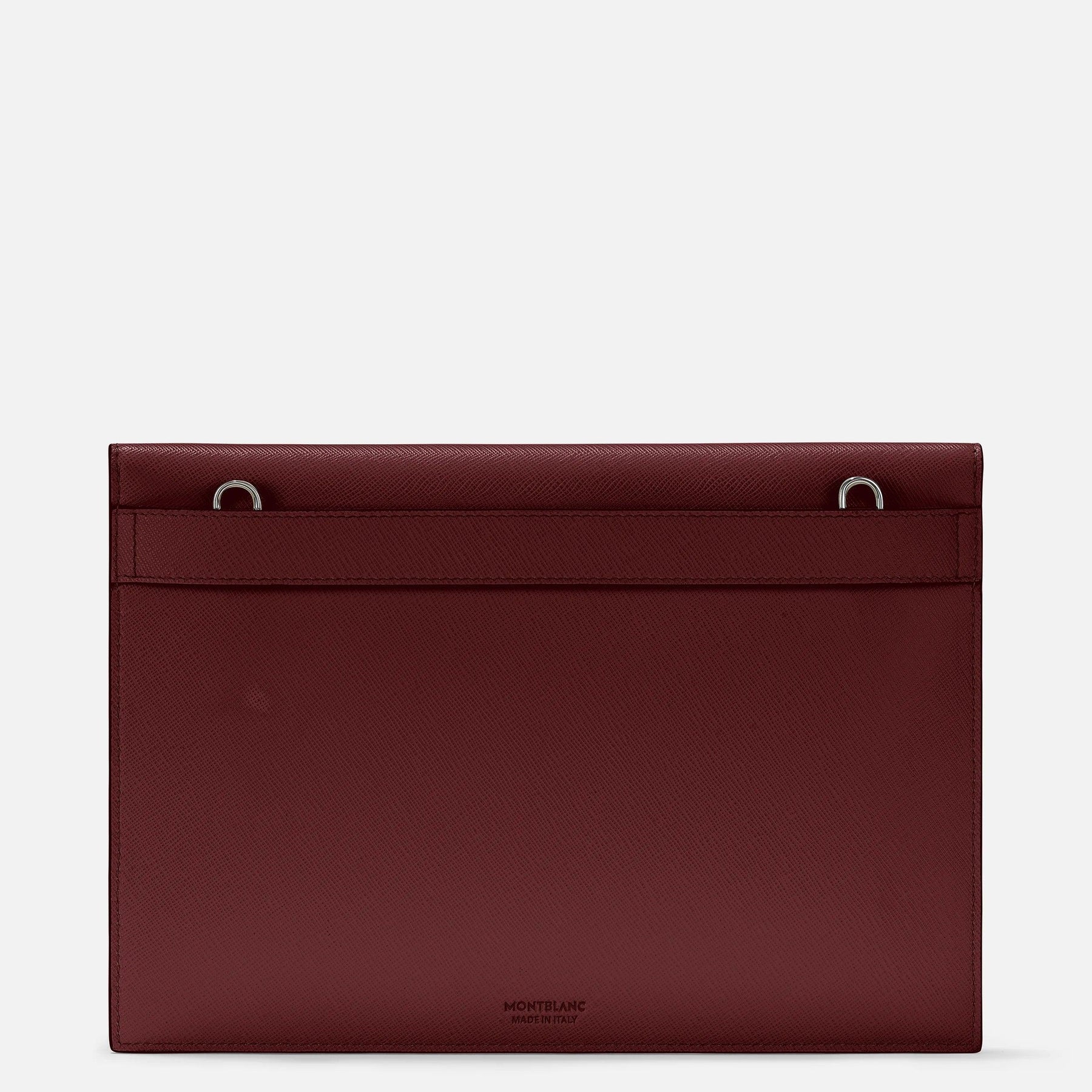 Cette pochette sophistiquée en cuir imprimé Saffiano a été conçue avec un design modulaire, qui rappelle la forme d'une enveloppe. L'accessoire peut être fixé sur des grands sacs, des porte-documents et des tote bag, offrant ainsi différentes possibilités de personnalisation.