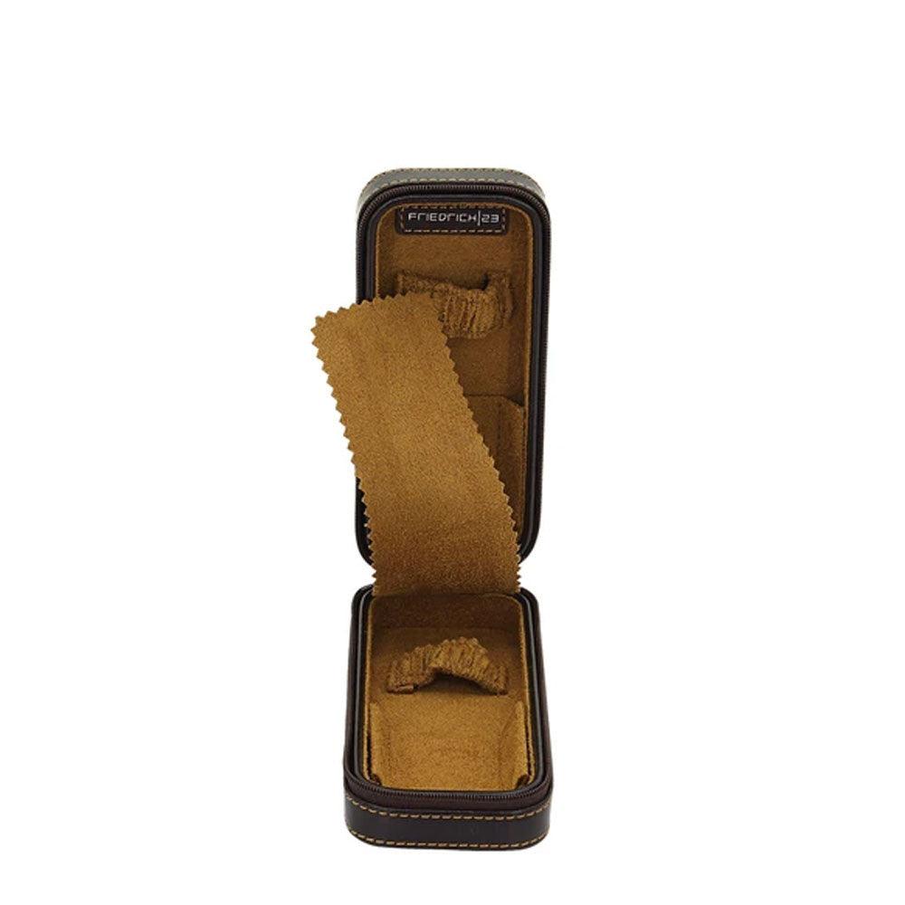Étui Friedrich23 pour deux montres, avec fermeture zippée et ouverture horizontale. Intérieur de couleur contrastée