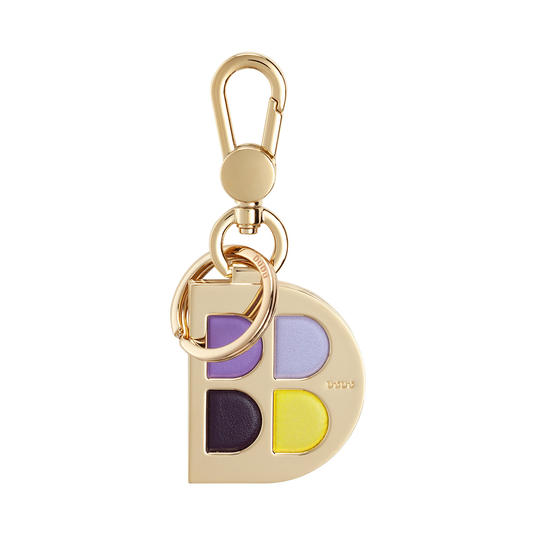 DUDU Porte-clés en métal en forme de D avec inserts en cuir véritable, porte-clés doré avec mousqueton et anneau, porte-clés pour voiture, maison, bureau
