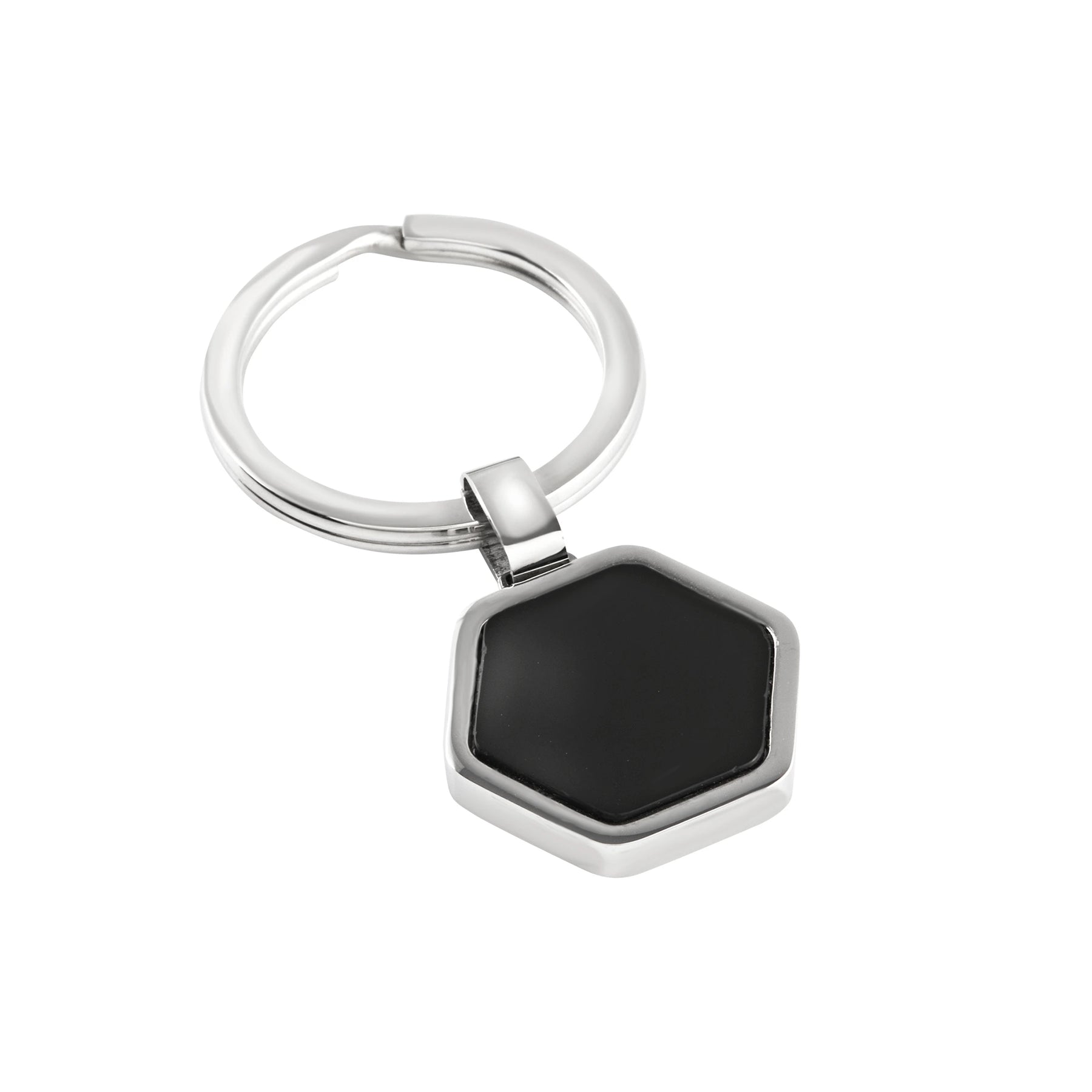 Az Elementalist kulcstartó tökéletes kiegészítő azoknak, akik eleganciát és funkcionalitást keresnek. A csiszolt acélból és fekete achátból készült hatszögletű medállal ez a kulcstartó a hátoldalán gravírozással is személyre szabható. Tegye személyessé, és mindig vigye magával.