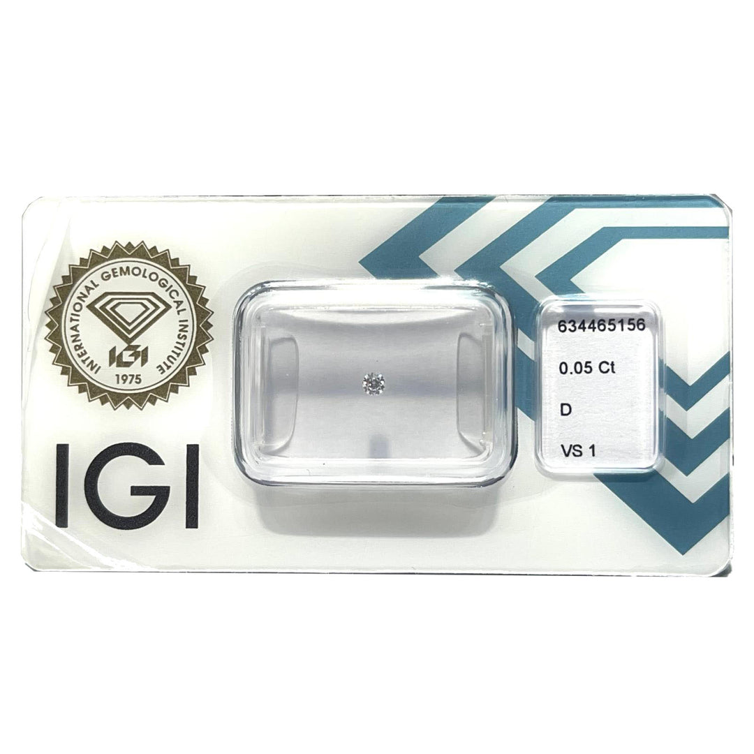 IGI gyémánt buborékfóliában tanúsított briliáns csiszolású 0,05 karátos szín D tisztaság VS1