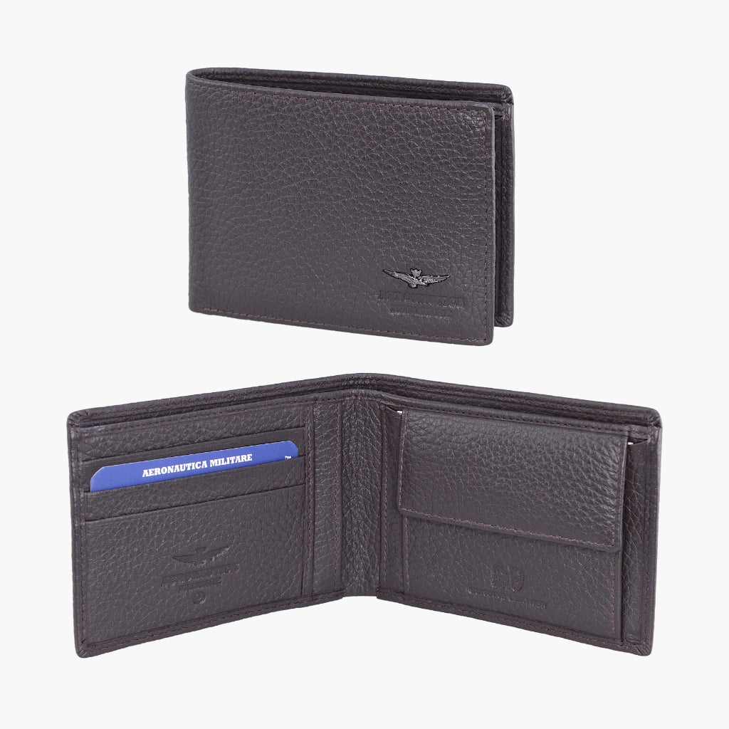 Valódi puha bőr férfi pénztárca, amelyet a fém sas és márka jellemez Légierő . A különleges bőrnek köszönhetően a pénztárca kényelmesen hordható a zsebben, ugyanakkor nem adja fel a valódi bőr ellenálló képességét és eleganciáját