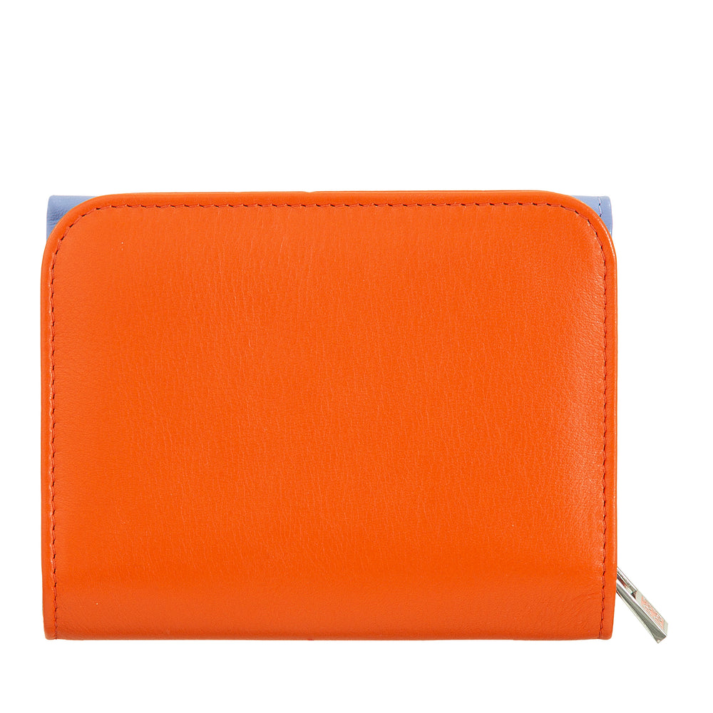 Kisméretű többszínű RFID Trifold női pénztárca valódi puha borjúbőrből. Több hitelkártya-zseb és külső érme pénztárca, 2 rekeszre osztott, recézett cipzárral. A külső zománcozott DuDu logó és a kontrasztos varrások életet adnak egy pénztárcának, amely nem marad észrevétlen.