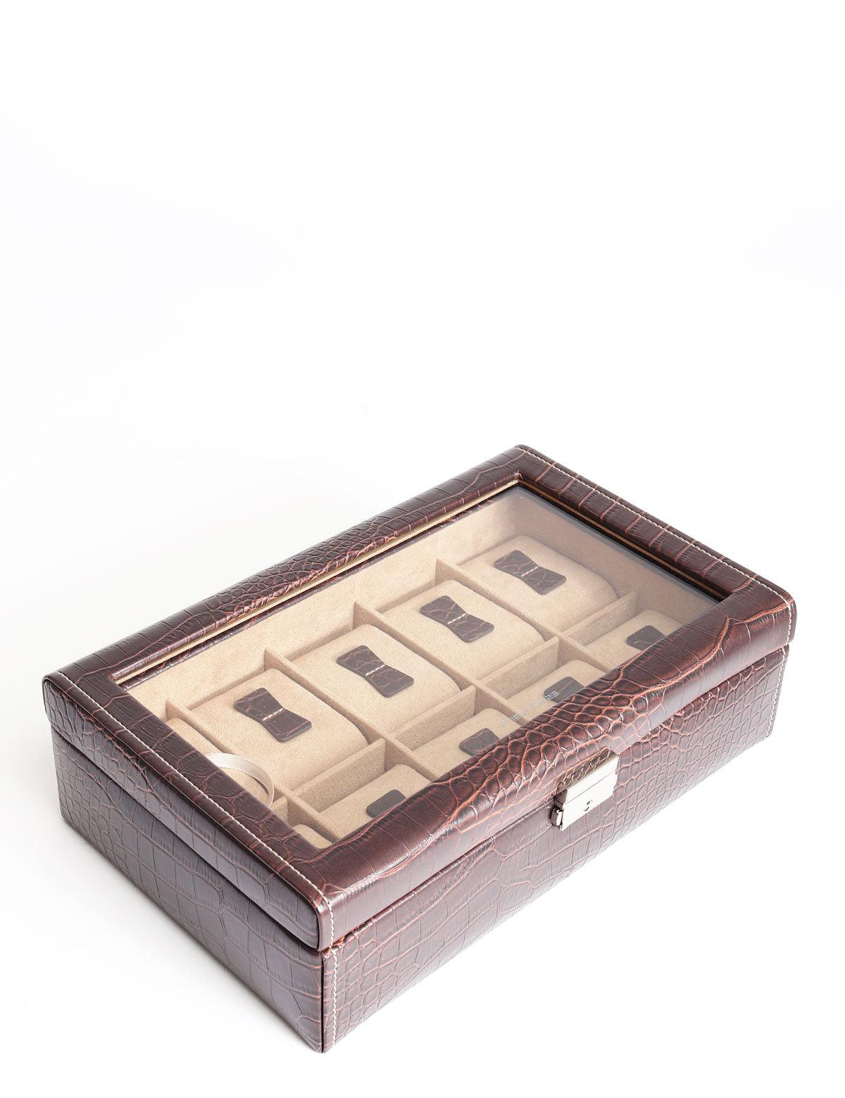 Friedrich23 merev, látható óratartó üveggel a tetején és 10 helyen kivehető betéttel, modell krokodilmintás kivitelben