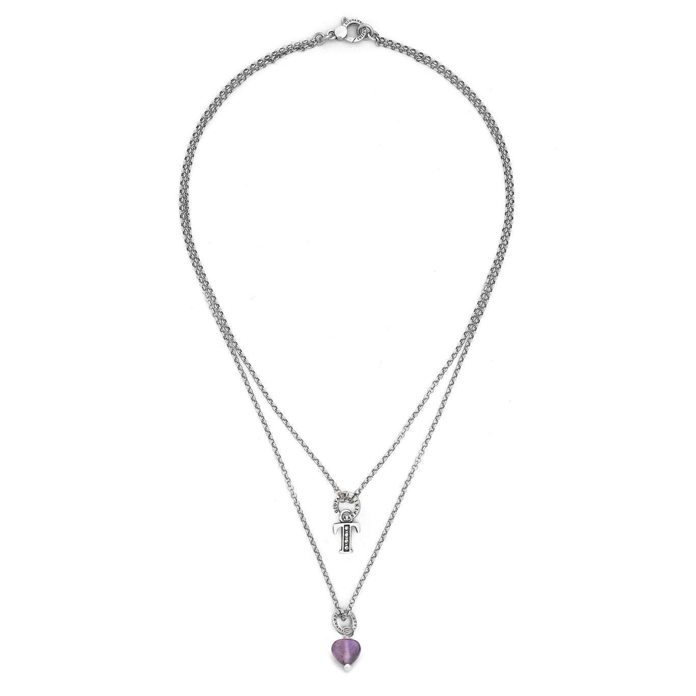 Giovanni Raspini ketting kostbaar geschenk letter t Ketting in 925 zilver, amethist en zirkonen X01475
