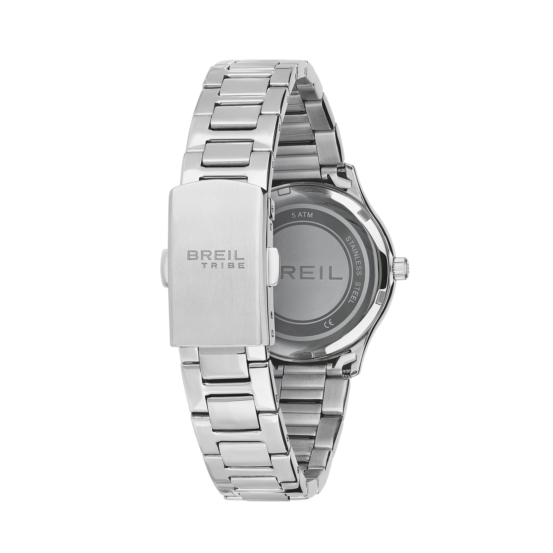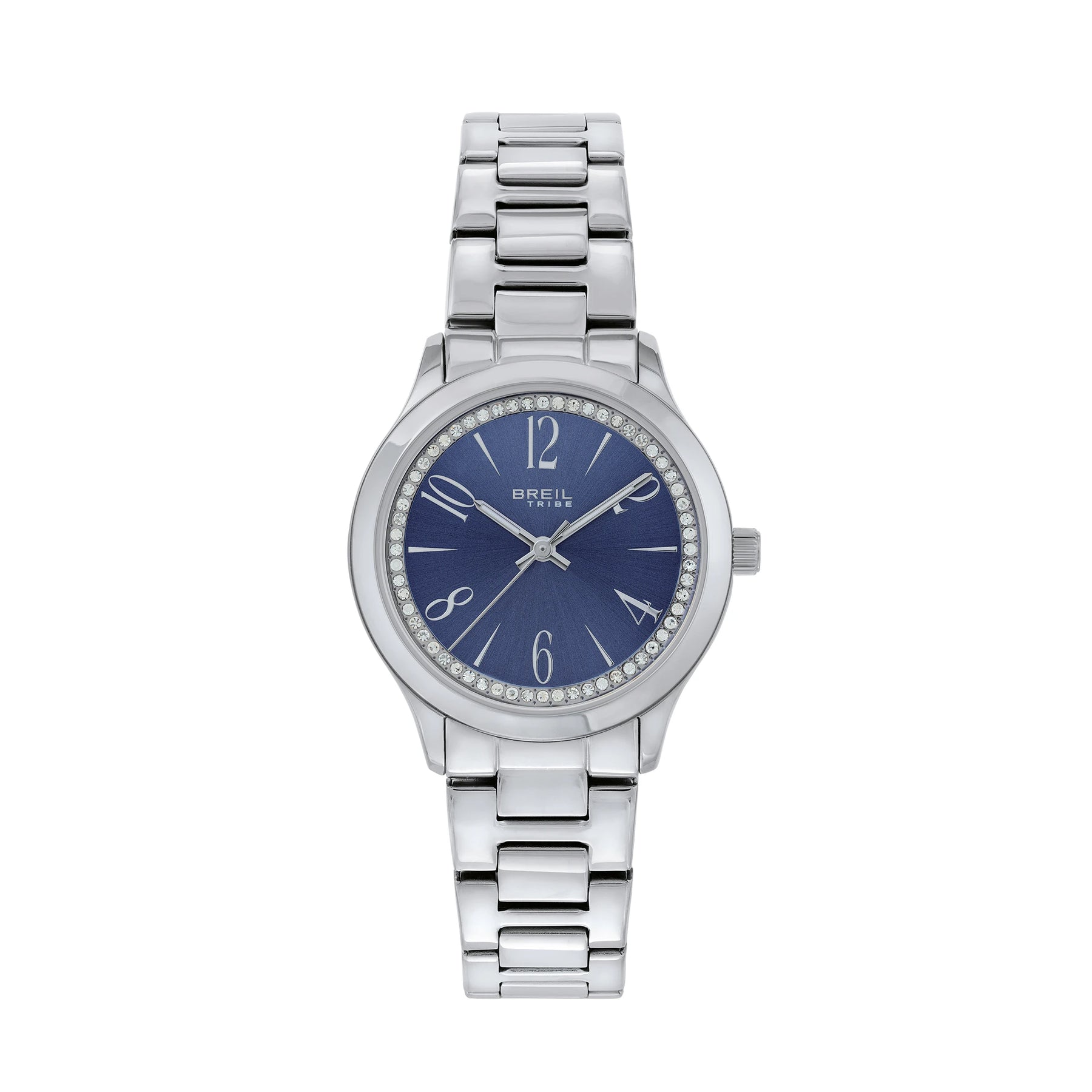Het Abby tijdloze dameshorloge valt op door zijn gepolijste zilveren stalen kast en de maagdenpalm wijzerplaat, gekenmerkt door het verfijnde zonnestraaleffect. De met kristallen versierde flens verlicht het ontwerp en geeft een vleugje licht, terwijl de zilveren bollen met lichtgevende behandeling maximale leesbaarheid garanderen.