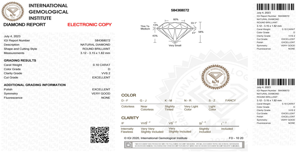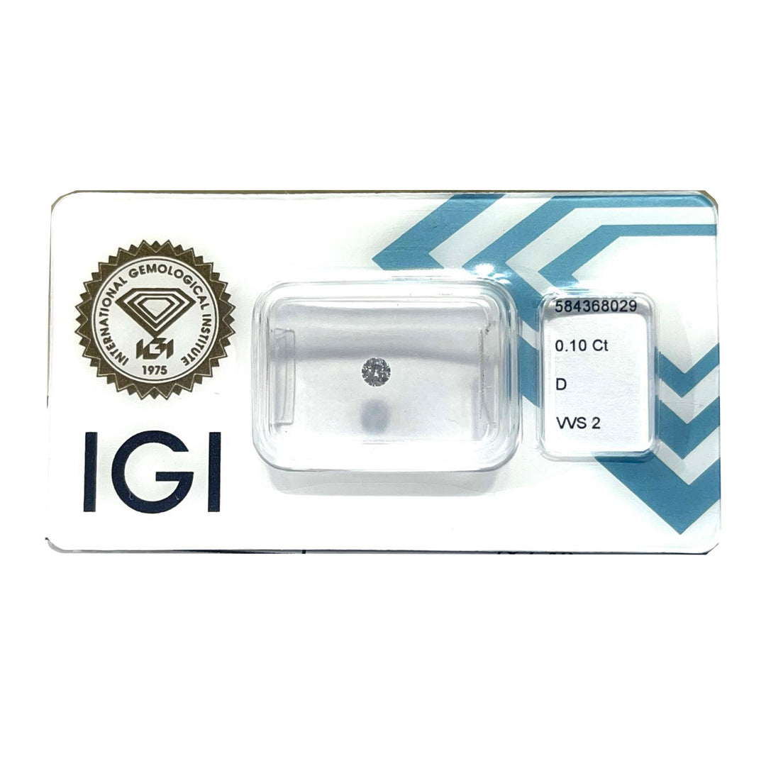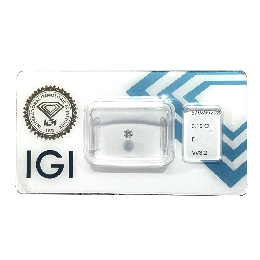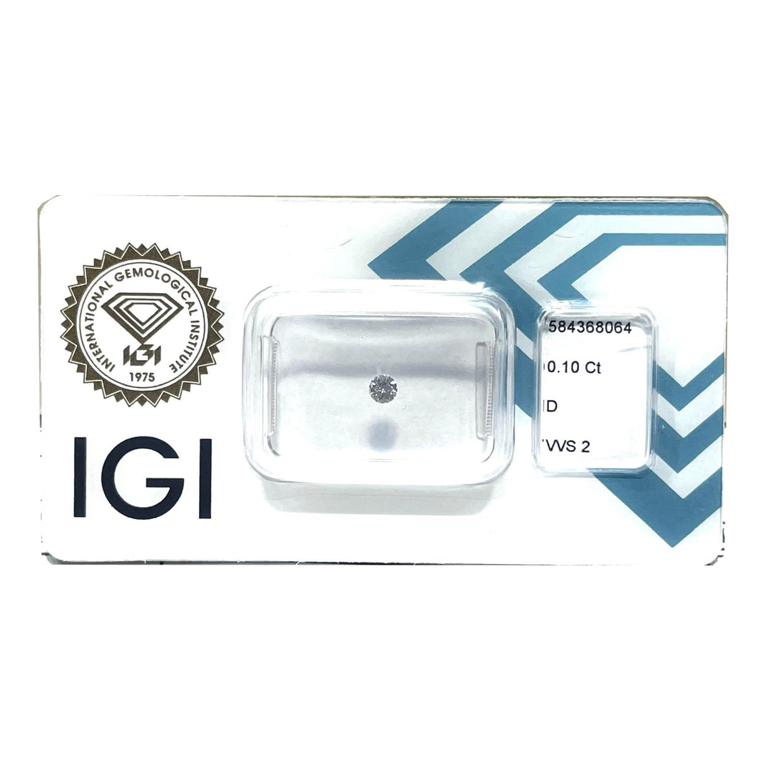 Diament IGI w blistrze, o szlifie brylantowym, o masie 0,10 ct, barwie D, czystości VVS 1