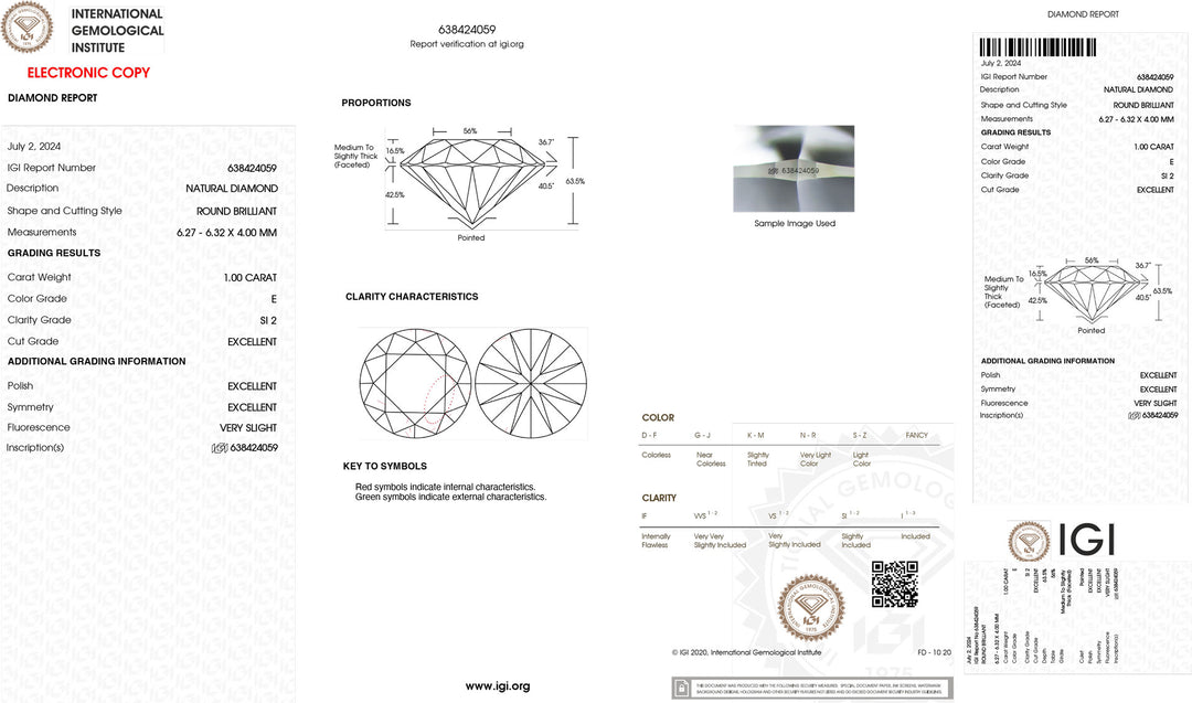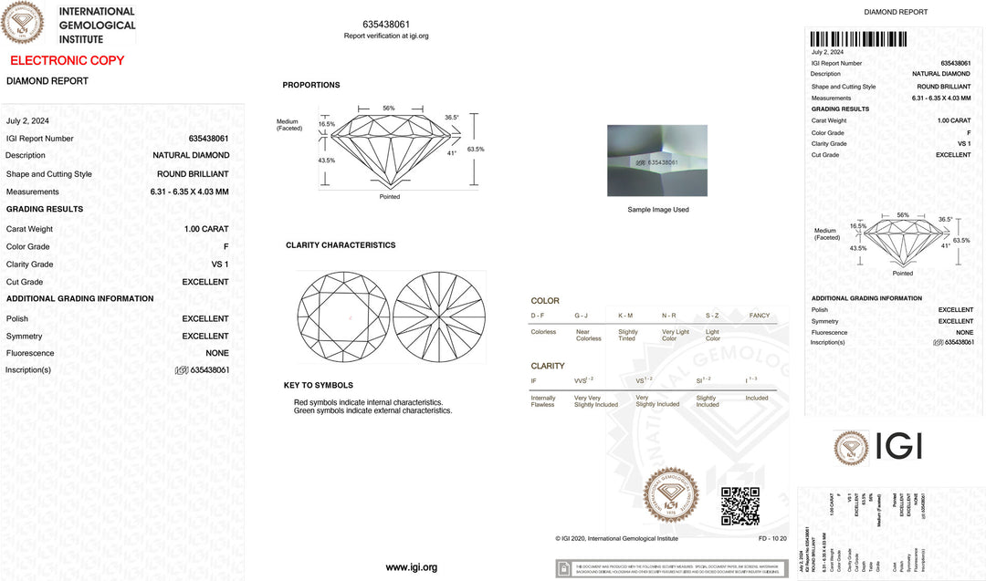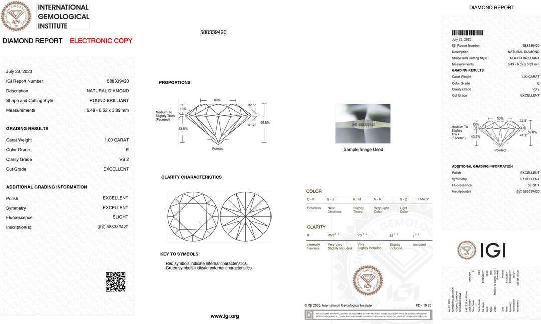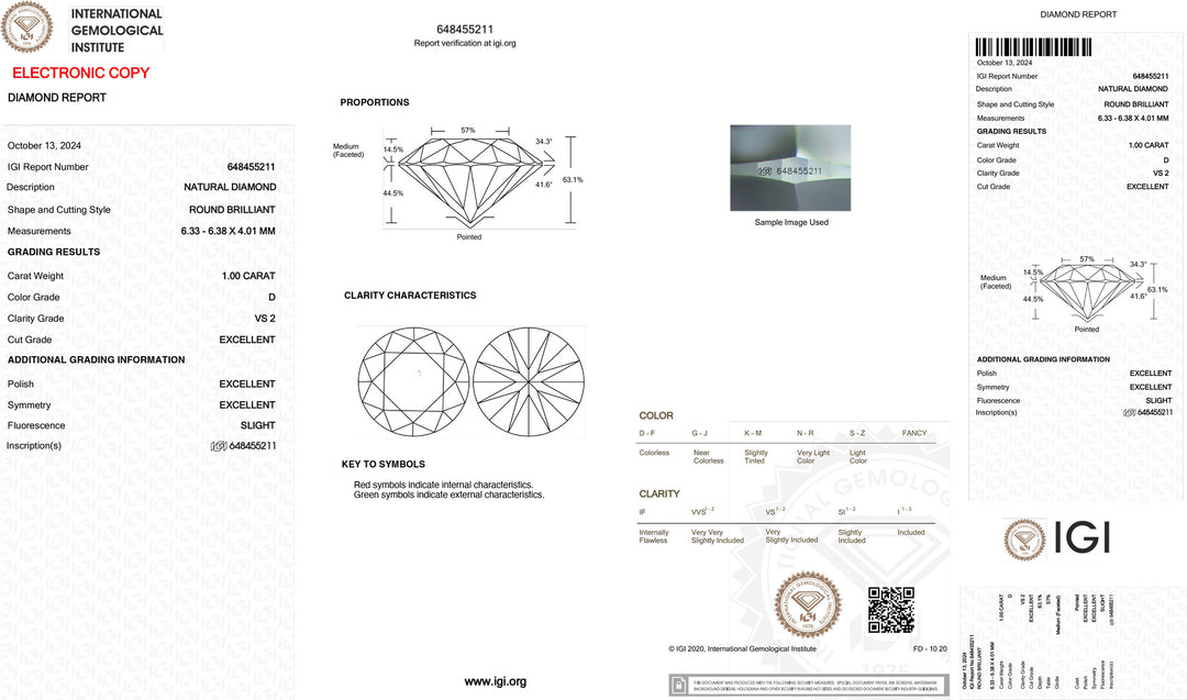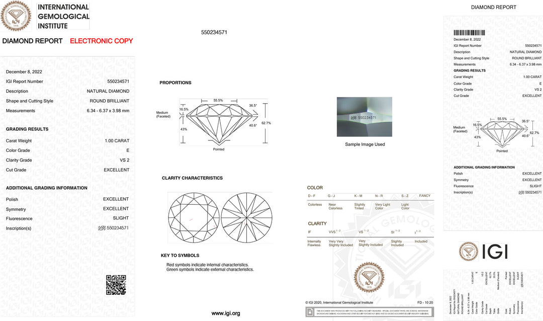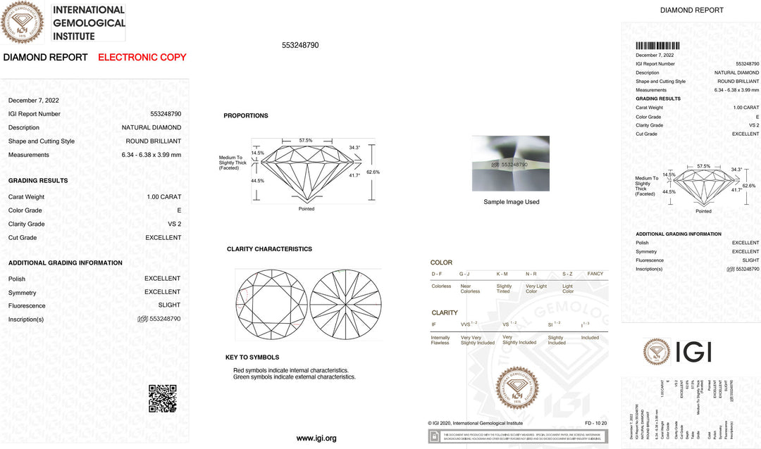 Diament inwestycyjny z certyfikatem IGI, barwa i klarowność 1,00 ct VS2
