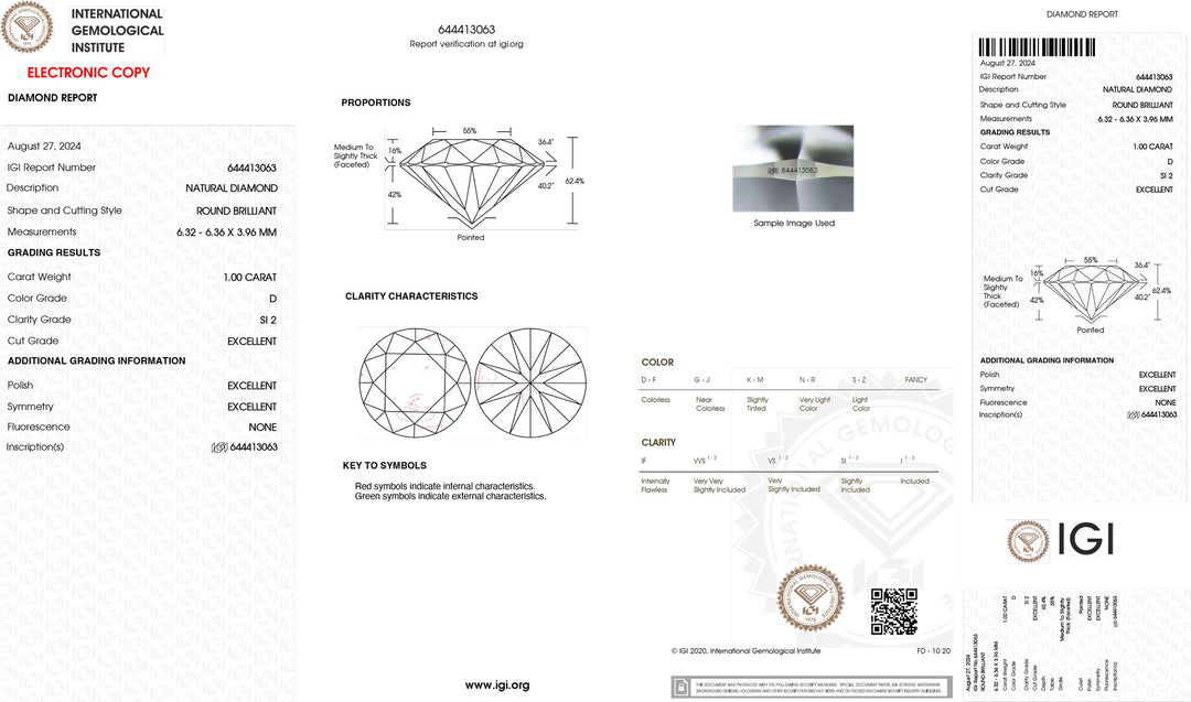 Diament inwestycyjny z certyfikatem IGI 1,00 ct, kolor D, klarowność SI2