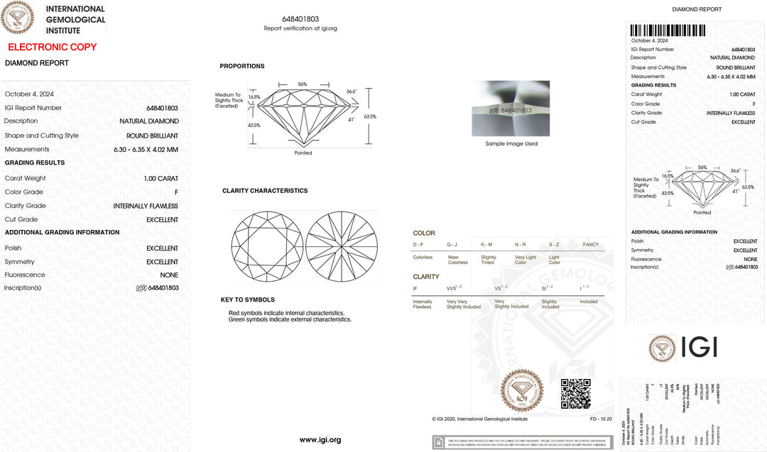 Diament inwestycyjny z certyfikatem IGI 1,00 ct, kolor F, klarowność IF