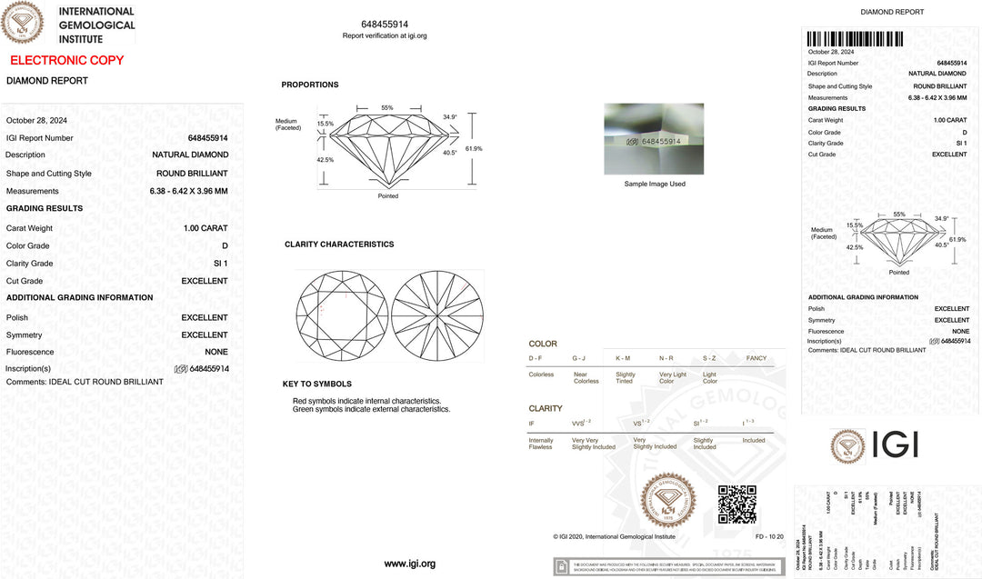 Diament inwestycyjny z certyfikatem IGI 1,00 ct, kolor D, klarowność SI1