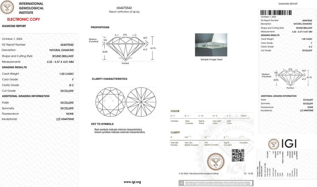 Diament inwestycyjny z certyfikatem IGI 1,00 ct, kolor F, klarowność SI2