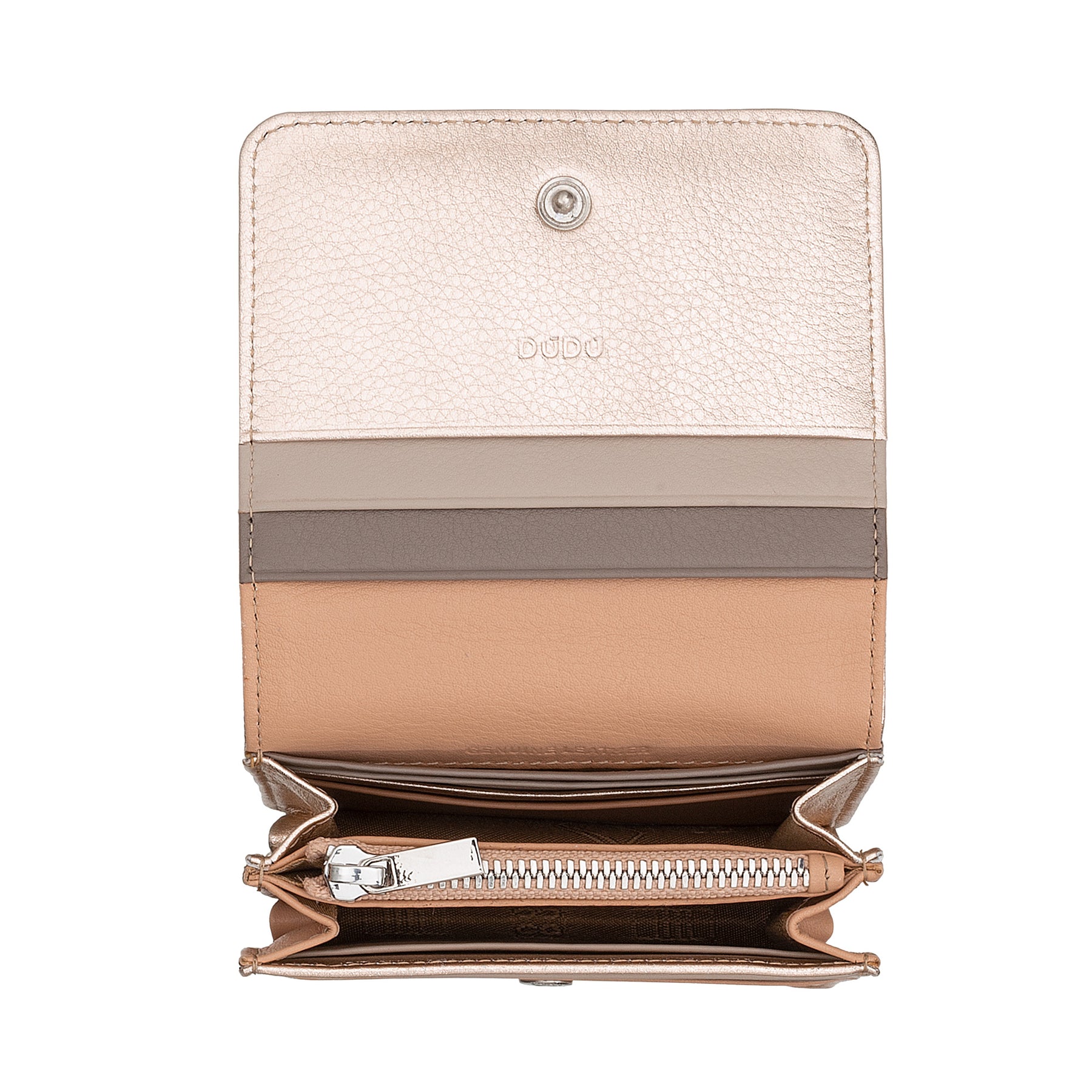 DUDU Mały, ultrakompaktowy, kolorowy, skórzany portfel damski z ochroną RFID, z wewnętrznym zamkiem błyskawicznym i 8 kieszeniami na karty