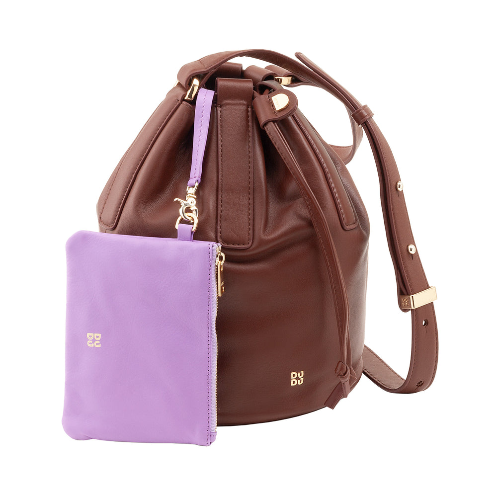 Mała torebka damska DUDU ze skóry naturalnej z regulowanym paskiem na ramię i zapięciem na sznurek - elegancka i kompaktowa torba na ramię ze sznurkiem, idealna do codziennego użytku