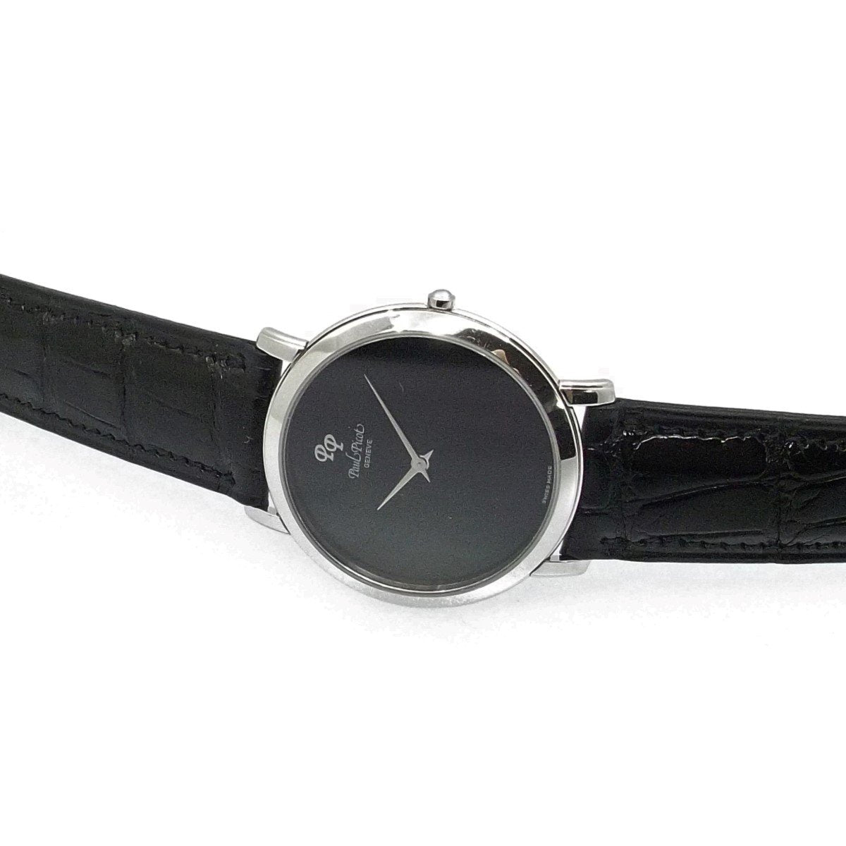 Damski zegarek Paul Picot Atelier czarny 35mm stalowy kwarcowy pasek ze skóry aligatora 004007