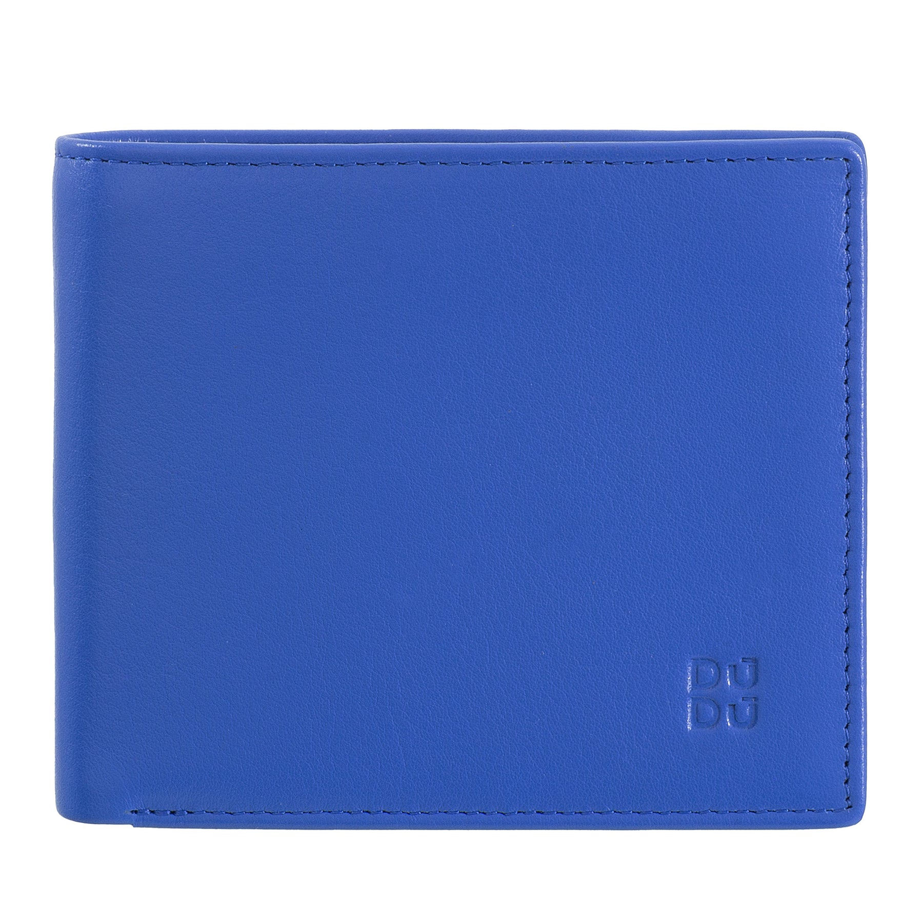 Portafoglio uomo piccolo RFID in vera morbida pelle di vitello. Cuciture in contrasto, interno multicolore e tasca portamonete. Una versione ridotta del classico portafoglio da uomo.