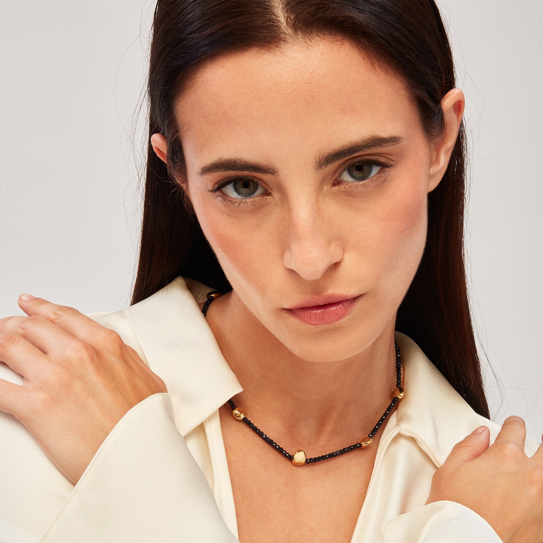 Adicione um toque de elegância e rebeldia ao seu look com a gargantilha B Rocks da Breil. Feito com corrente de arenito azul e pequenos elementos arredondados em aço dourado brilhante, é um acessório delicado, mas ousado, perfeito para quem adora ousar e se destacar na multidão.