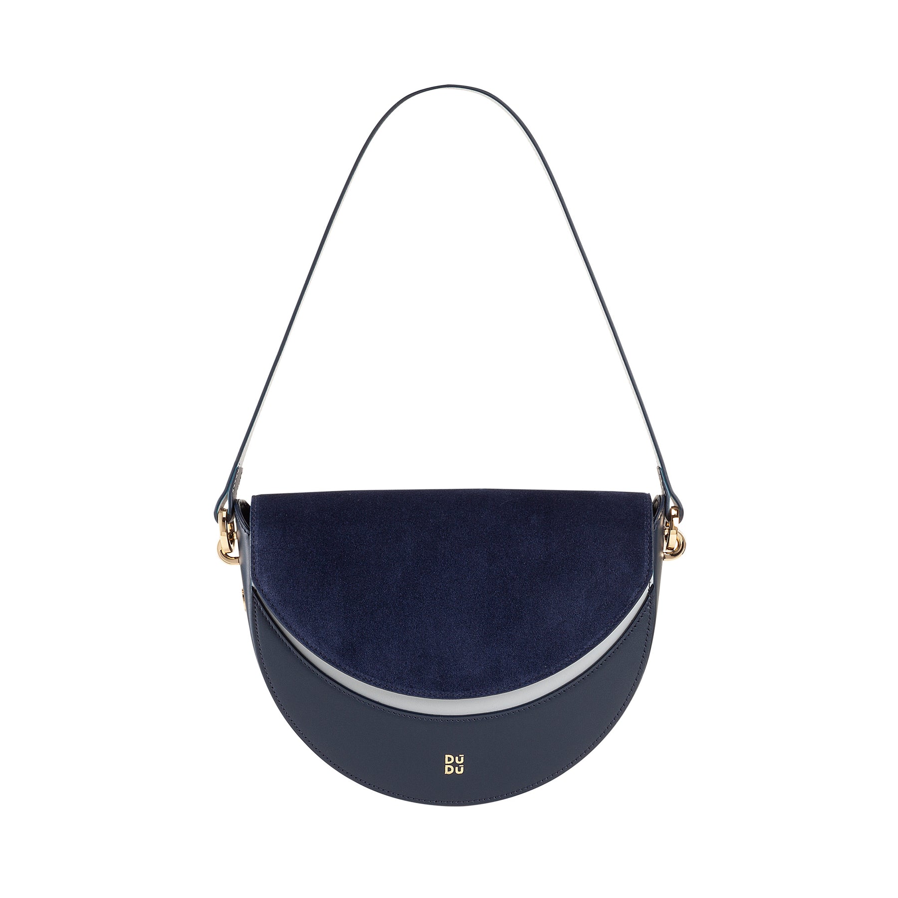 Bolsa de ombro feminina DUDU em couro genuíno, crescente rígido, fabricada na Itália, bolsa com aba e alça dupla, fecho magnético