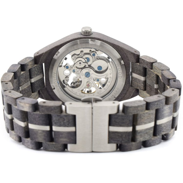 Relógio de madeira de aço automático de esqueleto automático 43mm Green Time ZW183A