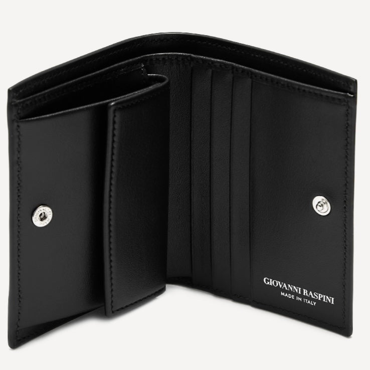 Pentru debutul său în lumea articolelor din piele, Giovanni Raspini alege culoarea neagră, care a fost întotdeauna culoarea distinctivă a mărcii, combinând-o cu piei recunoscute pentru calitatea lor: pielea fină Pienza Pieno Fiore Smooth Leather și Embossed Leather.