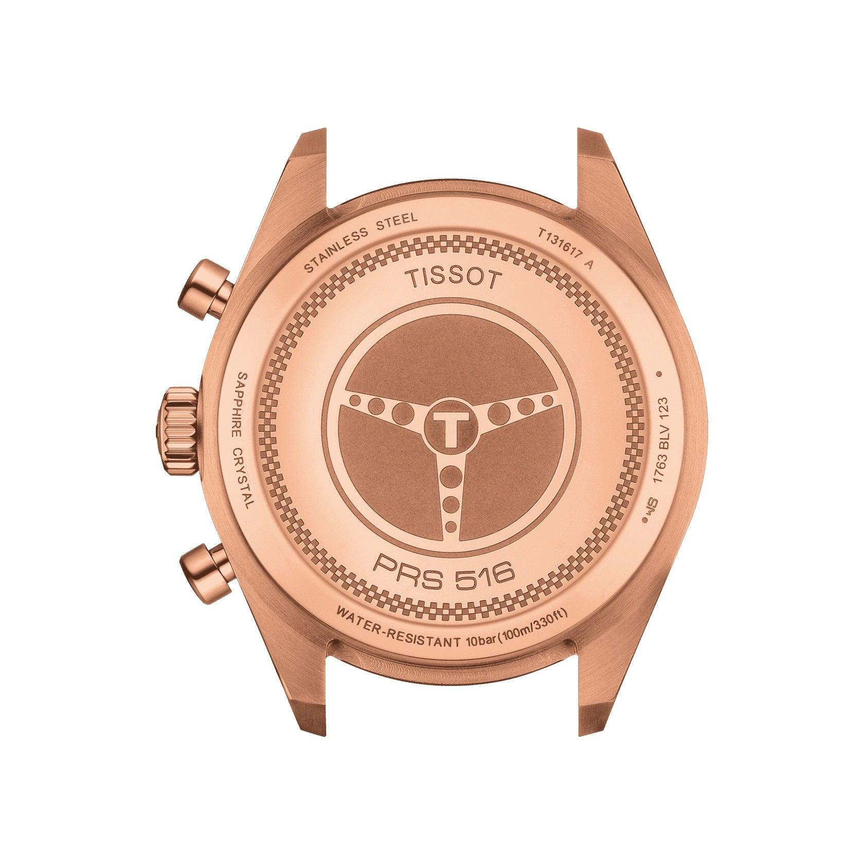 En myt född på 1960-talet, Tissot PRS 516 hyllar motorracing, vars inspiration kan hittas i knapparna som ser ut som kolvar samt baksidan graverad med bilden av rattarna på dessa racingbilar. Denna nya moderna version svarar på nuvarande trender med sitt 45 mm runda stålhölje och en tachymeterram.