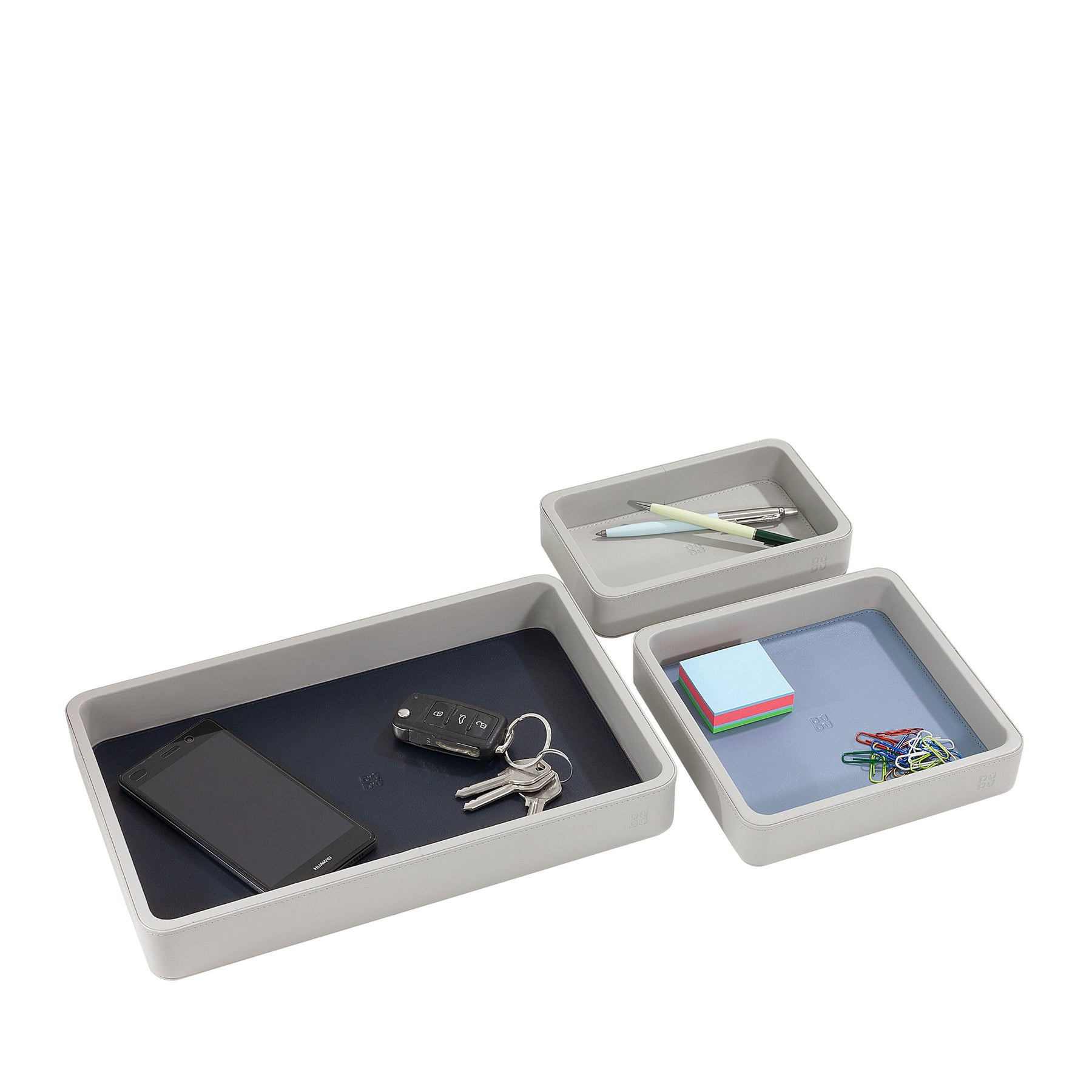 DUDU Set med 3 st Läderficka, Bordsförvaringsbricka Hemmaskrivbord Kontor, Nyckelhållare, Mynt, Telefon