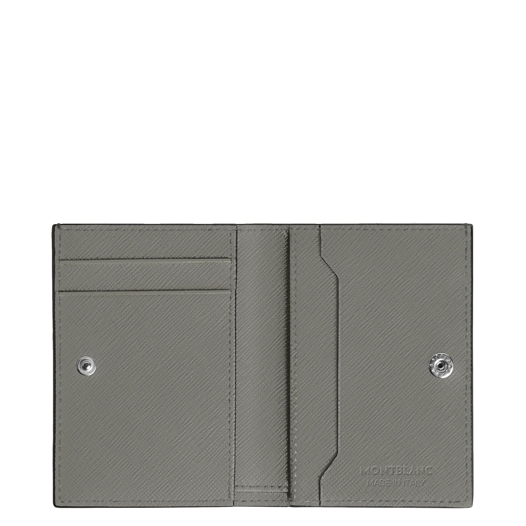 Denna lilla och eleganta plånbok i mellangrått läder med Saffiano-tryck låter dig bära dina viktigaste dokument med dig i full lätthet. Dess kompakta siluett har tre kreditkortsfack, ett sedelfack och två extra fickor.