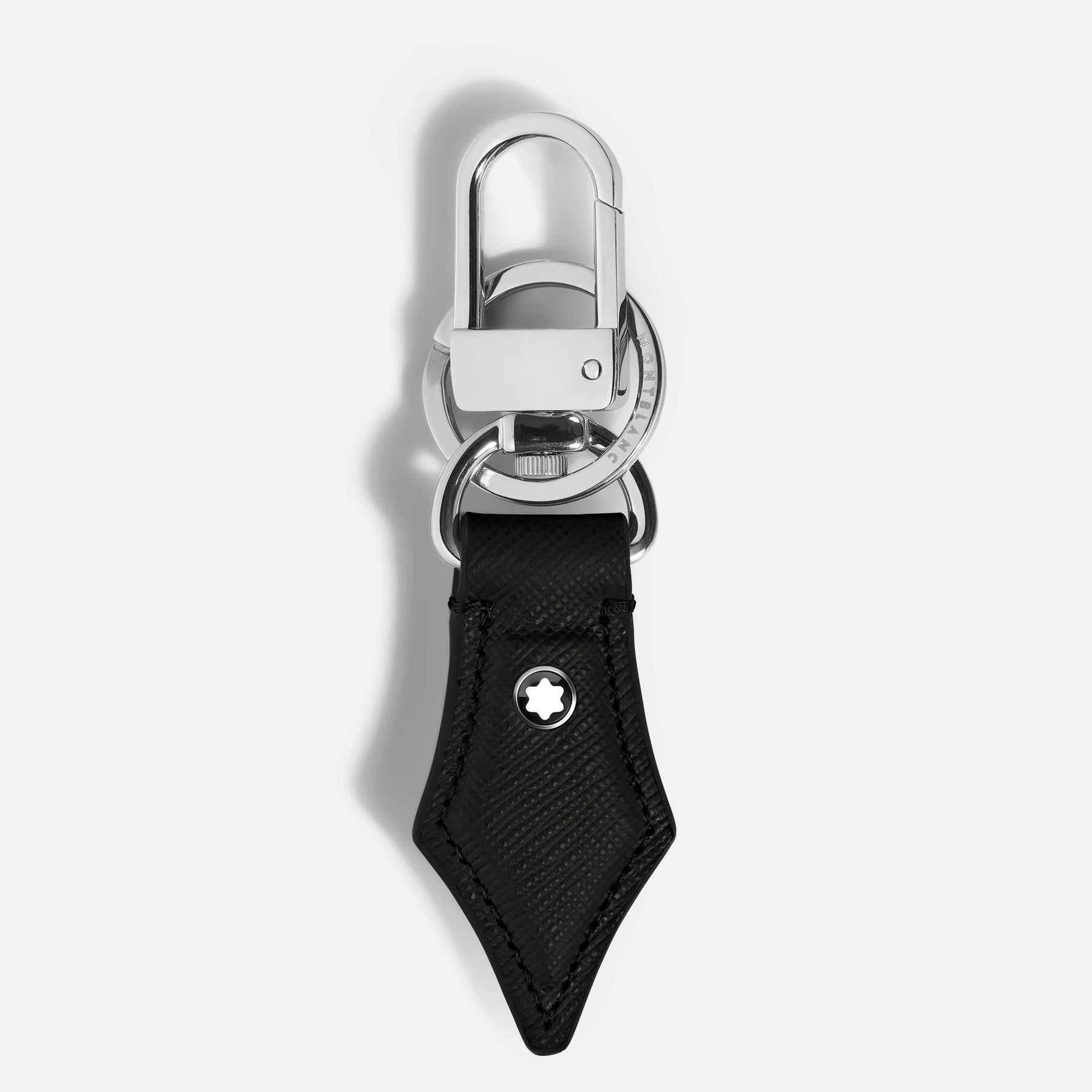 Montblanc-nyckelringen, gjord av präglat svart Sartorial-läder, är en diskret hyllning till skrivkonsten. Formen inspirerad av reservoarpennans spets speglar Montblanc-traditionen i en raffinerad detalj. Designad för bekvämlighet, den har en hållbar ögla för flera nycklar och en lättstängbar krok för att fästa på väskor.