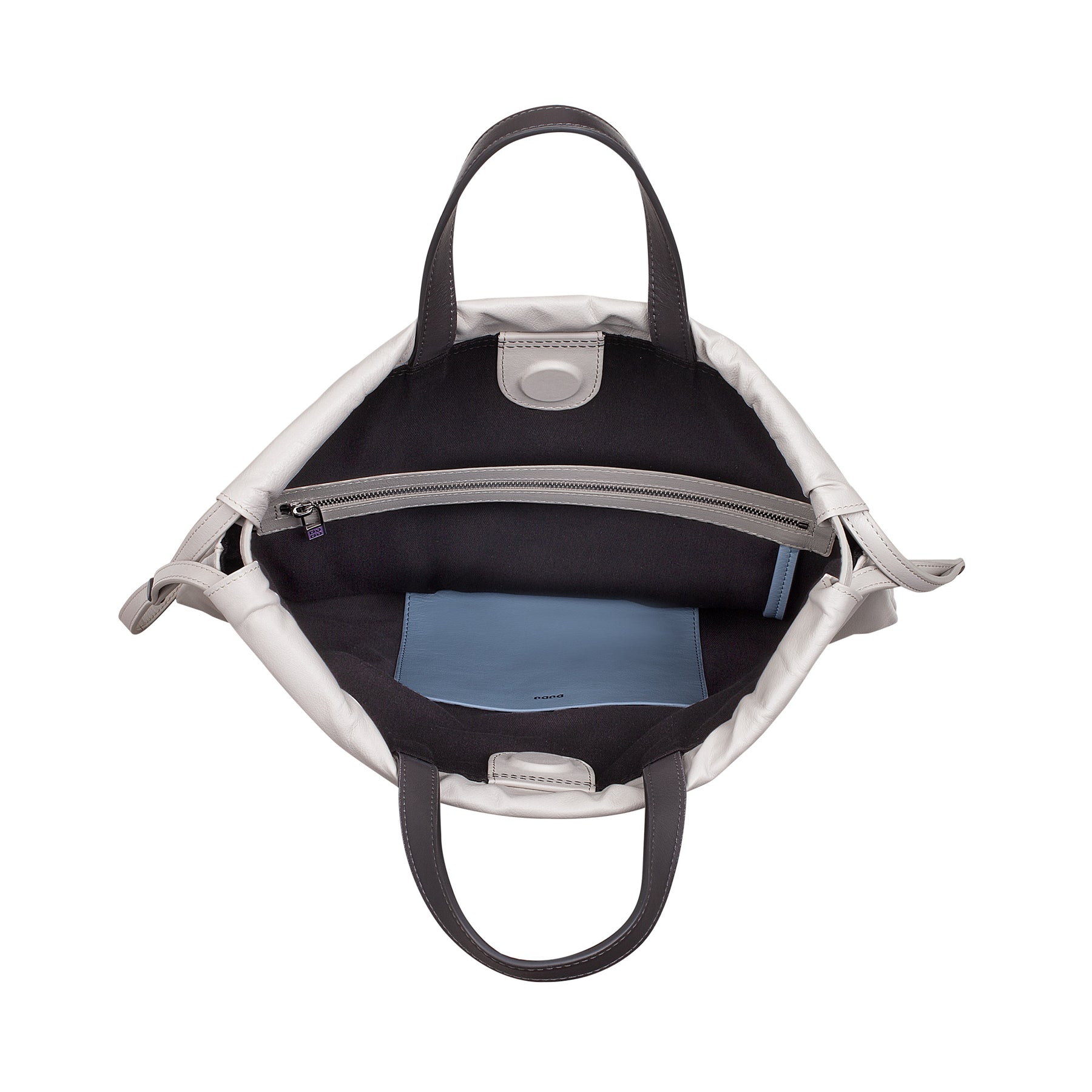 Allmän sammansättning: 1 extern dragkedja, 1 intern dragkedja, 1 innerficka och 1 nyckelkrok