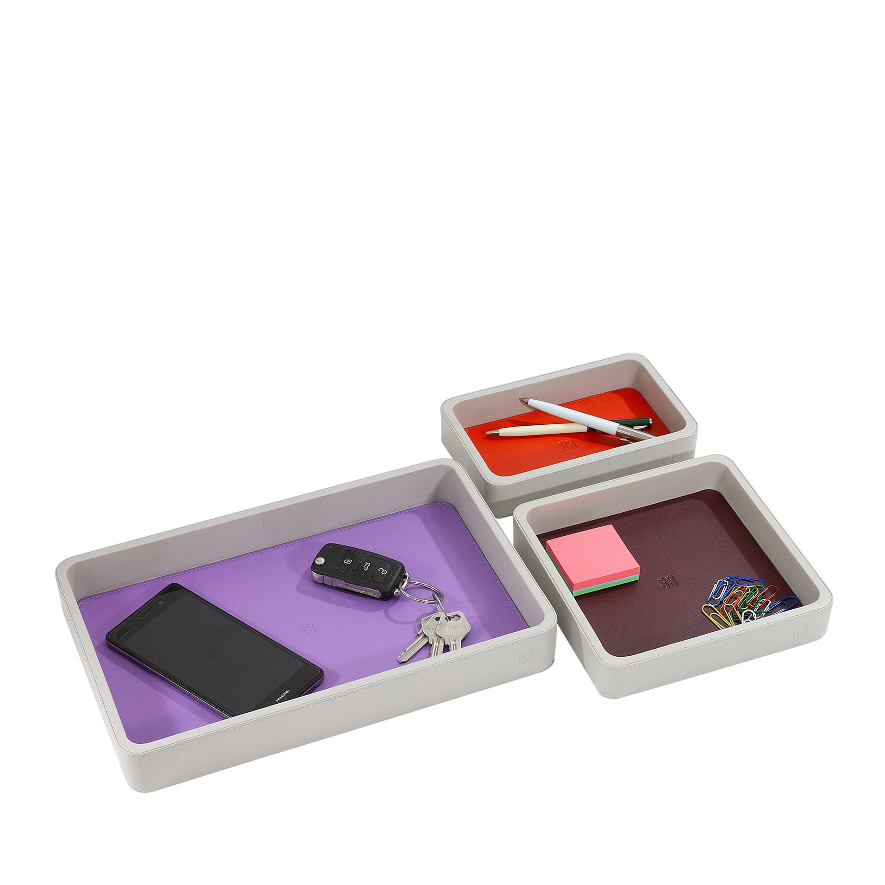 Har du för vana att tömma fickorna så fort du kommer hem och vill hålla ordning på allt? Samla dina nycklar, mynt och telefon i vårt plånboksfack i läder och du är klar! Tre designelement som kombinerar funktionalitet och stil, perfekt för att ge rummen en touch av färg och modernitet. Perfekt för hemmet, men också utmärkt för kontoret: det perfekta hemmet för alla dina pappersvaror, tack vare vårt Mondrian-läderset kommer ditt skrivbord alltid att vara snyggt. Finns i fem olika nyanser, allt du behöver göra är att välja din favorit!